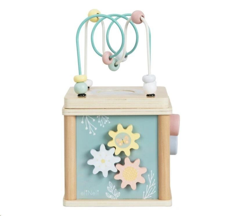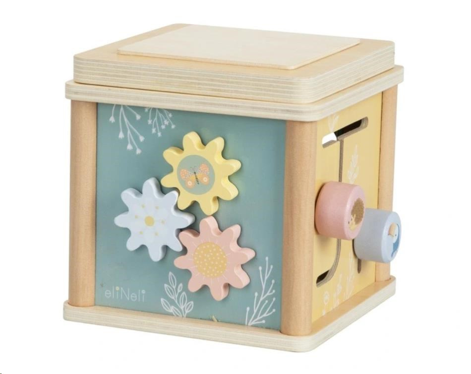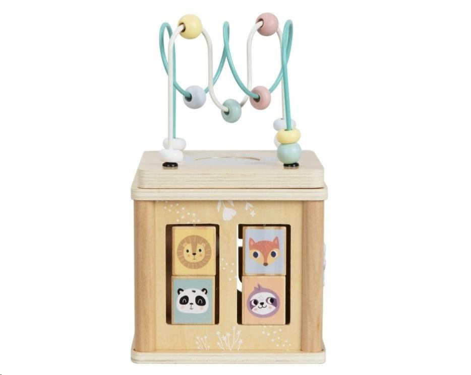 Dřevěná kostka s aktivitami představuje hned 5 hraček v jedné. Každá strana aktivity kostky je originální, přináší nové dobrodružství a zdokonaluje dětské dovednosti. Hrací prvky, pastelové barvy a zvířátka z lesa i ze ZOO motivují děti ke hře a pečlivému prozkoumání. Děti při hře s activity cube zdokonalují motorické dovednosti, koordinaci, logické myšlení, učí se soustředit a trpělivosti.