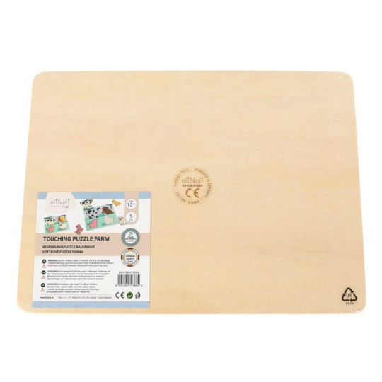 Originální dřevěné vkládací puzzle zavede děti na farmu, seznámí je se zvířátky, která mohou znát ze svého okolí i jejich kožíškem. Zvířátka v jejich skutečné podobě dodávají hře spolu s různými texturami realistický nádech. Děti při hře s puzzle zdokonalují motorické dovednosti, koordinaci očí a rukou, stimulují smysly a učí se poznávat zvířátka z farmy..
