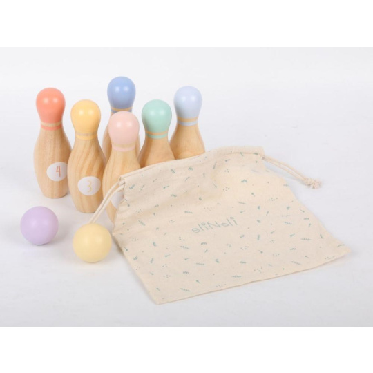 Sada dřevěných kuželek s koulemi umožní dětem i celé rodině zahrát si kuželky kdykoliv a kdekoliv. Kuželky v kombinaci přírodního dřeva s pastelovými barvami jsou ideální pro seznámí s touto hrou, k uspořádání soutěže i domácího kuželkového turnaje. Stačí čistý a rovný podklad a zábava může začít. Součástí balení je praktický plátěný pytlík, který usnadní úklid i přenášení kuželek na zahradu, domů, na návštěvu nebo na dovolenou..