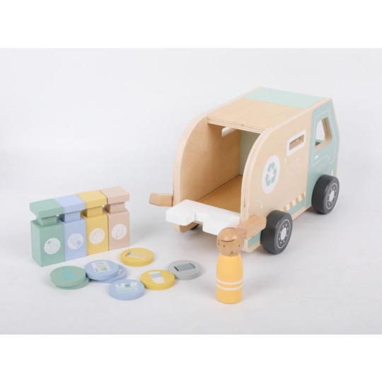 Popelářské auto s příslušenstvím je montessori hračkou, která dětem umožní hrát si i vzdělávat se. S realistickou dřevěnou hračkou se děti rychle vžijí do oblíbené dětské role - popeláře, užijí si spoustu zábavy a ještě se seznámí s problematikou třídění odpadu. Dřevěné popelářské auto zdokonalí dětské dovednosti, naučí děti poznávat barvy a třídit odpad..