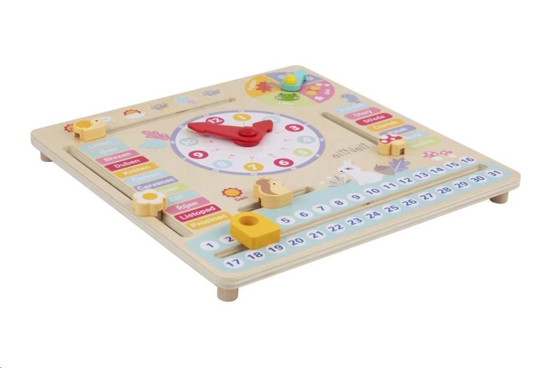 Dřevěný kalendář v češtině je krásnou vzdělávací hračkou i jedinečnou dekorací do pokojíčku holčiček i chlapců. Dětský kalendář v barevné kombinaci přírodního dřeva a krásných barev, s přírodními motivy a zvířátky, provede děti celým kalendářním rokem. Kalendář s lesními zvířátky pomůže dětem s orientací v čase. Pro děti je velice těžké pochopit a naučit se něco, co si nedokáží představit. S dětským kalendářem budou mít děti názorné ukázky, jak plyne den, jaké může být venku počasí, jak se střídají roční období, jak jdou jednotlivé dny a měsíce po sobě. Uprostřed kalendáře děti najdou velké barevné hodiny.