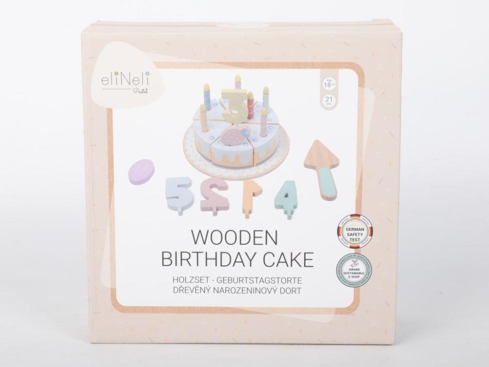 Dřevěný narozeninový dort se svíčkami a číslicemi umožní dětem slavit narozeniny klidně každý den. Dřevěná hračka v podobě krájecího dortu je skvělým doplňkem do dětské kuchyňky i obchůdku. S dřevěným dortem bude přichystání narozeninové oslavy pro oblíbeného plyšáka hračkou i velkou zábavou. Dort mohou děti porcovat a touto dobrotou pohostit všechny účastníky hostiny, prodávat jej v dětském obchůdku, cukrárně nebo kavárně..