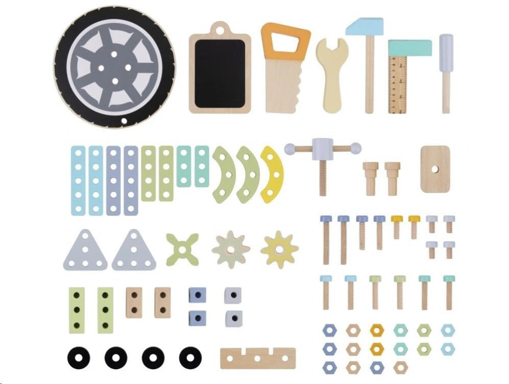 Vyrobeno z přírodního dřeva.- Ponk s bohatým příslušenstvím - celkem 73 ks.