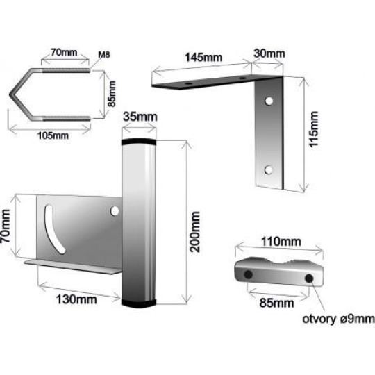 Základna: držák pro vertikální nebo horizontální uchycení na stožár do průměru 70mm