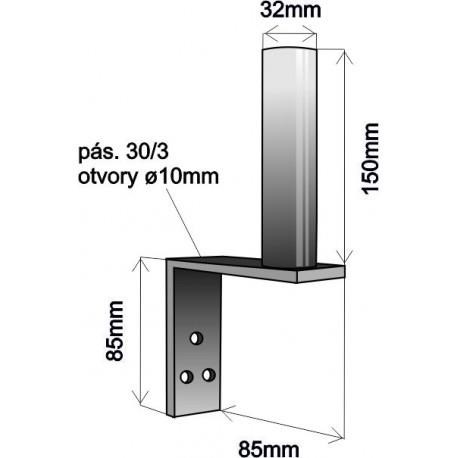 Základna: pásek 85x30x3mm, uchycení ve třech bodech