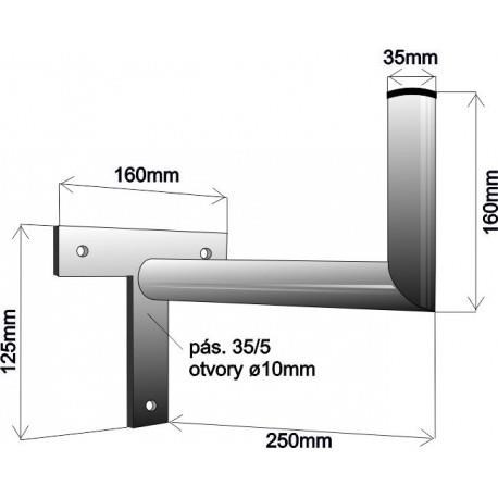 Držák antény na zeď mini, tvar T, délka 25cm