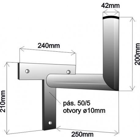 Držák antény na zeď, tvar T, galvanický zinek, délka 25cm