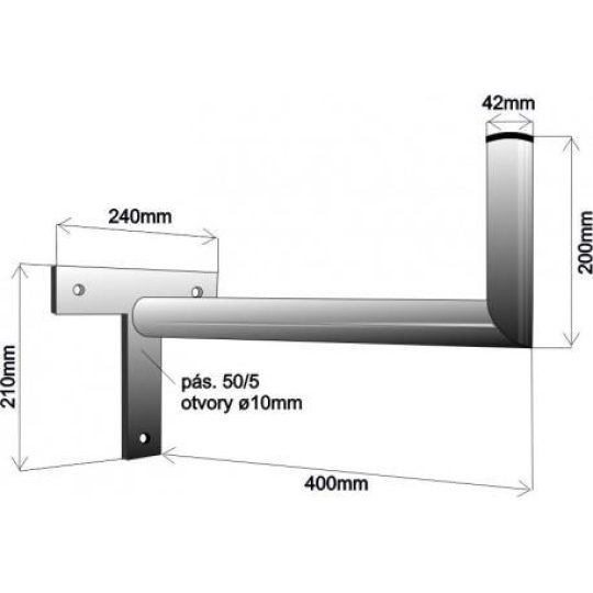 Držák antény na zeď, tvar T, žárový zinek, délka 40cm