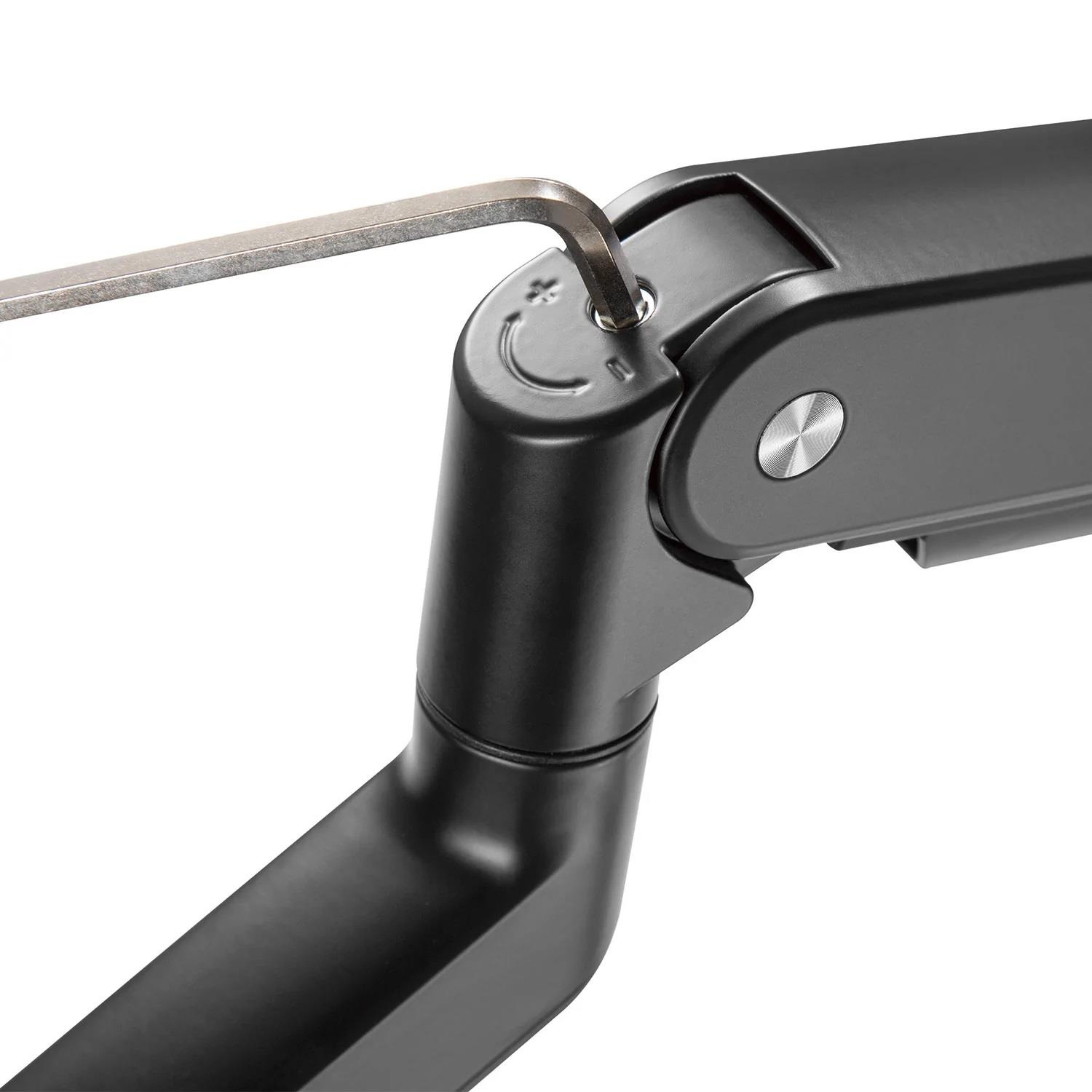 Držák monitoru Tv nebo All in One Fiber Mounts FM445 Profesionální stolní držák na monitor Tv All in One 15-35", otočný +/- 180°, sklopný +/- 45°, nastavitelná výška 178-418mm, výškové polohování 240mm, délka max. 443mm, 2 typy úchytů na stůl, VESA 75x75 a 100x100, nosnost 15kg Stolní držák na monitor nebo televizi s úhlopříčkou 15-35" v naprosto precizním provedení, špičkové kvalitě a profesionálním pojetím v každém detailu. Držák vyniká vysokou nosností plynové pružiny s nastavením od 1kg až do 15kg, je proto vhodný jak pro lehké a malé monitory, tak i pro velké monitory nebo All in One monitory. Nastavitelná výška od stolové desky od 178mm až do 418mm, výškový rozsah 240mm. Otáčení do stran bez omezení, naklápění ve velkém rozsahu až +/- 45°, nastavení vzdálenosti od stolního úchytu max. 443mm, funkce pivot, systém vedení kabeláže, 2 typy stolních úchytů (na okraj nebo do prostoru), instalační materiál. Držák je nejvyšší kvality a splní potřeby i náročných uživatelů. Barevné provedení černé, záruka 3 roky. Profesionální stolní držák na monitor nebo All in One Pc Fiber Mounts FM445 Technické údaje: nosnost 15kg na monitory a Tv s úhlopříčkou 15-35" podporuje VESA standardy 75x75 a 100x100 výškové polohování 240mm, výška od stolové desky 178-418mm otáčení do stran +/- 180° naklápění +/- 45° vzdálenost od úchytu 0-443mm funkce pivot (horizontální nebo vertikální natočení obrazovky) systém vedení kabeláže 2 typy stolních úchytů, na stolové desky 10-85mm barevné provedení černé záruka 3 roky Držák na monitor nebo All in One Pc v nejvyšší kvalitě s nosností 15kg Fiber Mounts FM445 Stolní držák monitoru Tv Fiber Mounts FM445 podporuje VESA standardy: VESA 75x75 VESA 100x100.