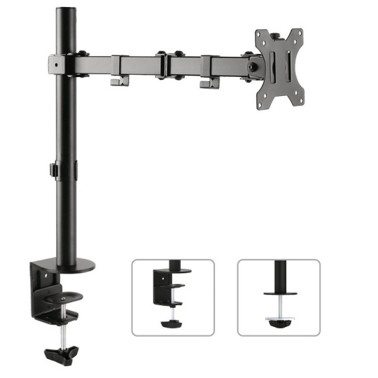 Stolní držák na monitory 13-32", otočný +/-180°, náklon +/-45°, výškové polohování 0-400mm, vedení kabeláže, 2 typy stolních úchytů, VESA 75x75 a 100x100, nosnost 8kg.... více