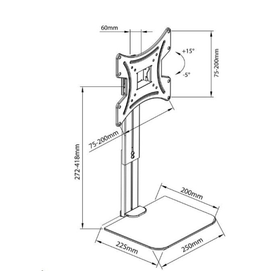 Držák Tv monitoru s poličkou Fiber Mounts FM46    Nástěnný držák na televize a monitory 15" - 43" s poličkou na příslušenství 250 x 200mm a nosností 5kg, nastavitelná vzdálenost poličky od držáku 272 - 418mm, naklápění obrazovky +15° / -5°, vzdálenost obrazovky od zdi 60mm, VESA 75x75 až 200x200, nosnost držáku 20kg    Nástěnný držák na Tv monitor včetně poličky na příslušenství Fiber Mounts FM46     Technické údaje:   nosnost držáku 20kg nosnost poličky 5kg držák podporuje VESA standardy 75x75 až 200x200 možnost naklápění obrazovky +15° / -5° vzdálenost od zdi 60mm  skleněná polička 250 x 200mm nastavitelná vzdálenost poličky od držáku 272 - 418mm kovová konstrukce, polička z tvrzeného bezpečnostního skla instalační materiál barevné provedení černé záruka 2 roky    Držák na televizi nebo monitor 15" až 43" včetně poličky na příslušenství 250 x 200mm Fiber Mounts FM46     Držák Tv / monitoru FM46 podporuje VESA standardy:  VESA 75x75 VESA 100x100 VESA 200x100 VESA 200x200.