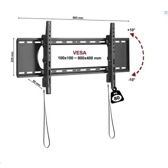 Profi sklopný držák na středně velké i rozměrné televizory / monitory 45" - 90", náklon +10° / -10°, vzdálenost 60mm, automatické zajištění Tv proti vysazení, instalační plocha 885 x 225mm, instalační materiál, VESA 100x100 až 800x400, nosnost 80kg.... více
