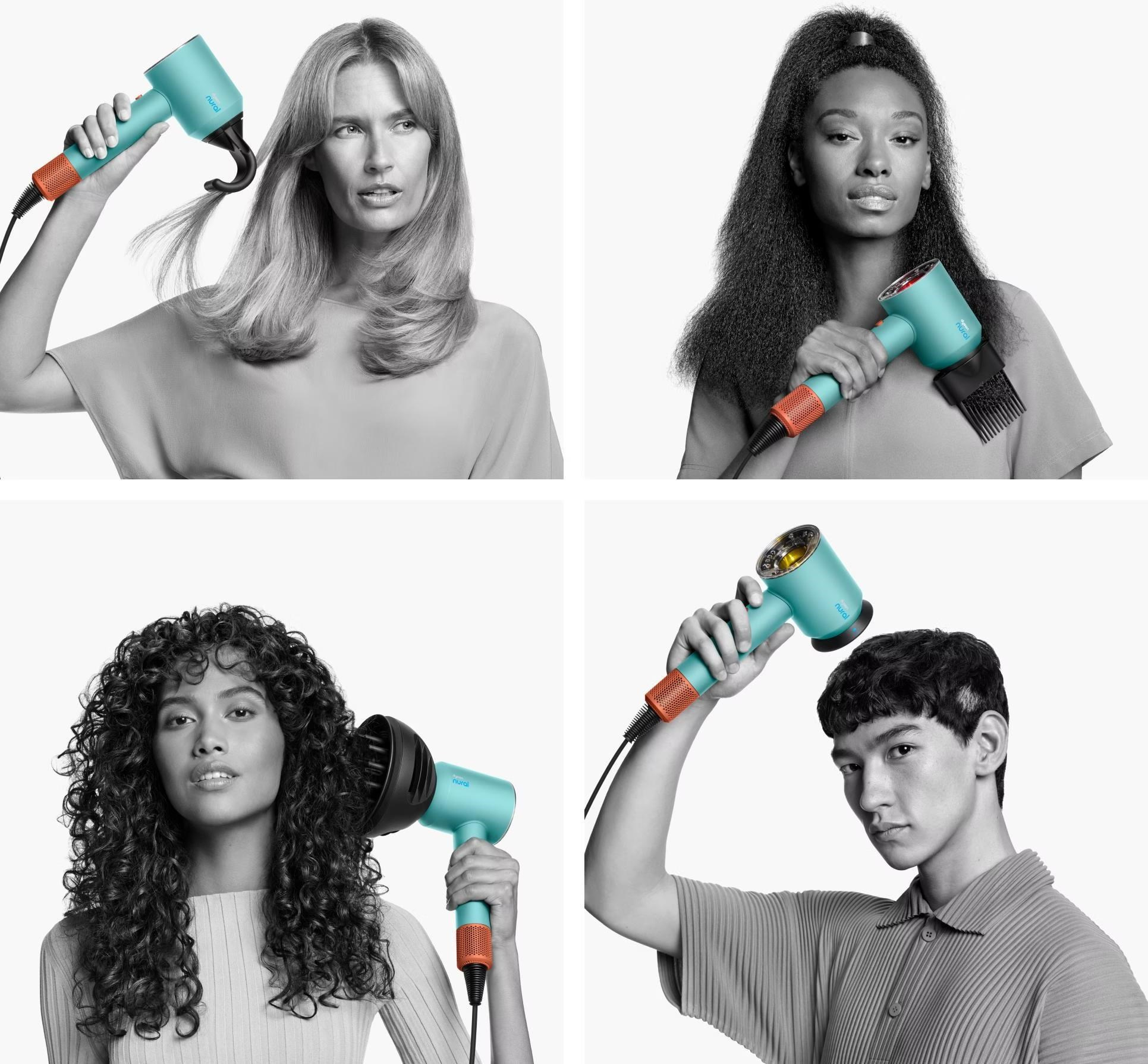 Automaticky se přizpůsobí, aby zvýraznil přirozený lesk a pomohl chránit zdraví pokožky hlavy. Rychlé a inteligentní vysoušení. Žádné poškození teplem. Učí se vaše stylingové preference. Pět inteligentních nástavců.