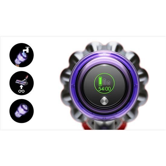 Technologie společnosti Dyson optimalizující výkon a spouštěcí tlačítko šetřící akumulátor pomáhají maximalizovat dobu chodu použitím pouze takového výkonu, který potřebujete. - Inteligentně informuje v reálném čase