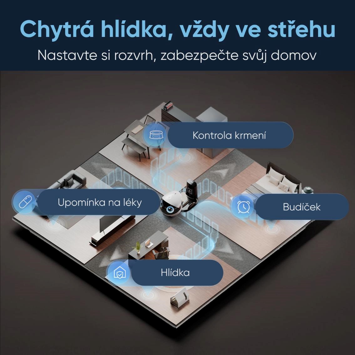 - Inteligentní AI sledování pohybu – automaticky rozpozná osoby nebo domácí mazlíčky a sleduje je s plynulým obrazem v reálném čase