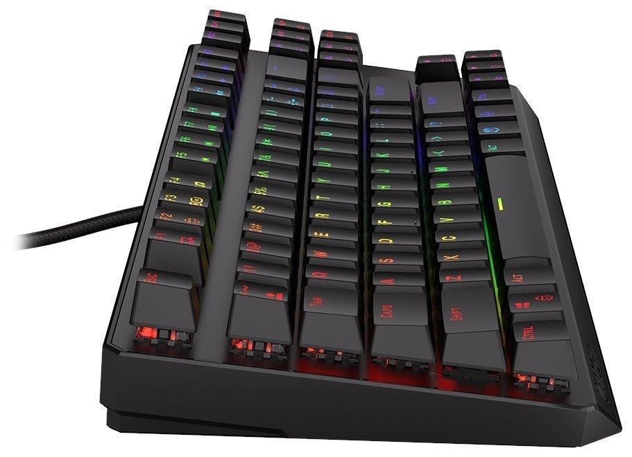 Kompaktní mechanická klávesnice pro každého vášnivého hráče. Díky spínačům Kailh Blue nabízí výbornou odezvu a výdrž přes 50 milionů stisků. Konstrukce klávesnice z hliníku vykazuje jen tu nejvyšší možnou odolnost a stabilitu. Klávesy jsou RGB podsvícené a nabízí možnost vlastního nastavení. Klávesy jsou navíc také plně programovatelné, díky tomu lze klávesnici individualizovat přesně podle potřeb hráče a hrané hry. Samozřejmě nechybí ani funkce Anti-Ghosting a N-Key rollover. Připojení je realizováno skrze odnímatelný USB kabel.