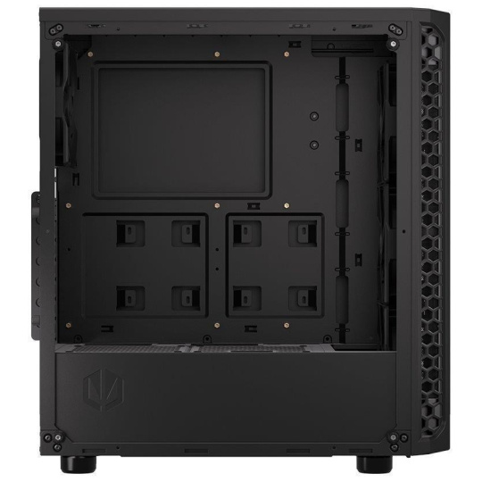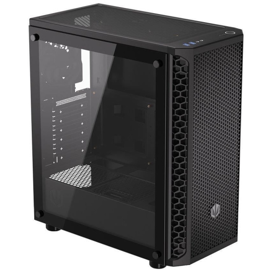 Skříň formátu Middle Tower s průhlednou bočnicí z tvrzeného skla nabízí dvě 2,5" pozice pro SSD disky a dvě 3,5" pozice pro pevné disky. Na horní části se nachází dva USB 3.0 porty, sluchátkový výstup a audio vstup pro mikrofon. Vybavena je čtyřmi 120 mm ventilátory, které spolu s perforovaným čelním panelem zajišťují dostatečné proudění vzduchu. Důmyslné řešení umožňuje pohodlné umístění až 360 mm dlouhého výměníku vodního chlazení na přední straně. Ve skříni je dostatek prostoru pro chladič CPU do výšky až 161 mm a grafickou kartu o délce až 350 mm. Dodávána je bez zdroje. Součástí je také sada prachových filtrů.