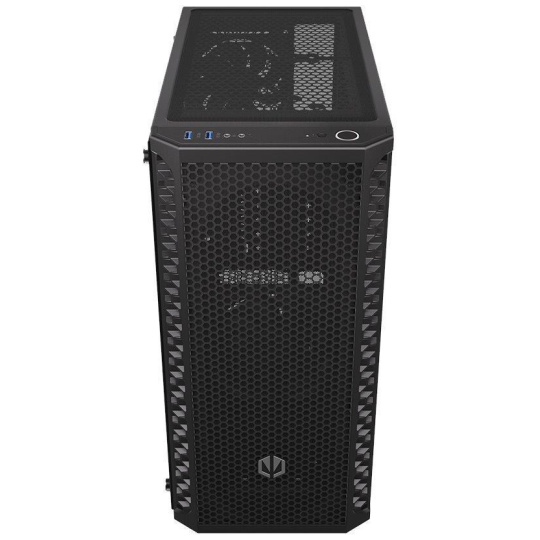 Skříň formátu Middle Tower s průhlednou bočnicí z tvrzeného skla nabízí dvě 2,5" pozice pro SSD disky a dvě 3,5" pozice pro pevné disky. Na horní části se nachází dva USB 3.0 porty, sluchátkový výstup a audio vstup pro mikrofon. Vybavena je dvěma 120 mm ventilátory, které spolu s perforovaným čelním panelem zajišťují dostatečné proudění vzduchu. Důmyslné řešení umožňuje pohodlné umístění až 360 mm dlouhého výměníku vodního chlazení na přední straně. Ve skříni je dostatek prostoru pro chladič CPU do výšky až 161 mm a grafickou kartu o délce až 350 mm. Dodávána je bez zdroje. Součástí je také sada prachových filtrů.
