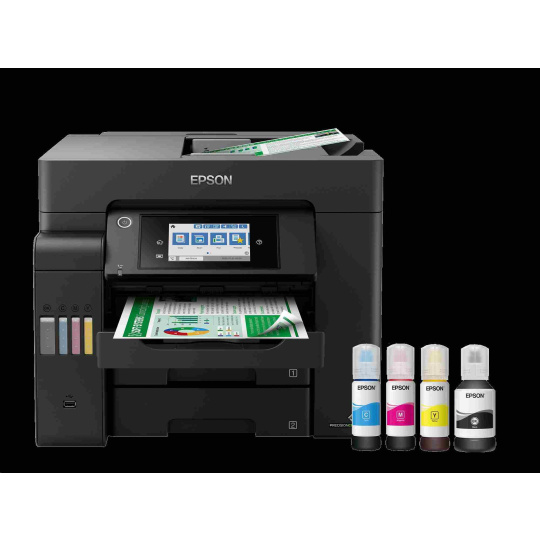 S touto snadno použitelnou tiskárnou EcoTank můžete tisknout, skenovat, kopírovat a faxovat dokumenty při opravdu výjimečně nízkých nákladech na jednu stránku. Veškeré úlohy lze zvládat rychle díky vysoké rychlosti tisku a skenování, dvěma předním zásobníkům na 250 listů, zadnímu podavači na 50 listů a automatickému podavači dokumentů o kapacitě 50 listů. Díky funkcím mobilního tisku, Ethernet připojení a dotykovému LCD displeji s úhlopříčkou 10,9 cm můžete tisknout tak, jak právě potřebujete.