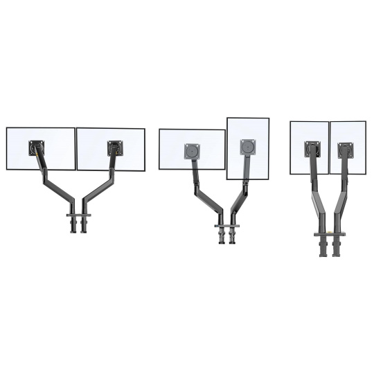 Kancelářský stolní držák na 2 monitory NB G32 Ergonomický stolní držák na 2 monitory 17-32", nastavitelná výška, otáčení, naklápění, vysouvání, PIVOT, vedení kabeláže, VESA 75x75 a 100x100, nosnost 30kg Profesionální designový stolní držák na 2 monitory 17-32" nejvyšší kvality, snadno polohovatelný a ergonomický. Výškové polohování monitorů od stolové desky 200-530mm, otáčení do stran +/-360°, naklápění monitorů +85°/-30°, maximální vzdálenost od uchycení 630mm, PIVOT, USB port, 2 typy stolních úchytů, aretace otáčení a vysouvání, VESA 75x75 a 100x100, nosnost 30kg Kancelářský stolní držák na 2 monitory, plně ergonomický NB G32 Technické údaje: celková nosnost 30kg plynová pružina s nastavením na hmotnost každého monitoru 2-15kg podpora VESA standardů 75x75 a 100x100 plynulé nastavení výšky monitorů od stolní desky 200-530mm max. vysunutí od stolního uchycení 630mm naklápění monitorů +85° / -30° otáčení každého ramene do stran +/- 360° funkce PIVOT (rotace monitorů +/-360°) systém vedení kabeláže aretace ramen v poloze (červíky) USB port na podstavě 2 typy stolních úchytů (na okraj nebo do prostoru) nejvyšší kvalita s důrazem na detail záruka 3 roky Nezávislé polohování monitorů 17-32" na stolním držáku NB G32 Kancelářský držák na 2 monitory podporuje VESA standardy: VESA 75x75 VESA 100x100 možnost zakoupení včetně VESA nástavce 200x100 (viz. výše zvolte VESA standard) možnost zakoupení včetně VESA nástavce 200x200 (viz. výše zvolte VESA standard) 2 typy stolních úchytů: na okraj stolu, max. tloušťka stolové desky 80mm do prostoru stolové desky přes otvor (10-50mm), max. tloušťka stolové desky 90mm.
