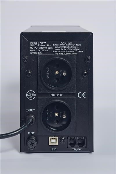 Počet výstupních zásuvek:2; Použití:Desktop; Provedení:Tower; Zdánlivý výkon VA:750; Topologie:Line-Interactive; Fáze (Vstup/Výstup):1:1; Komunikace:USB; Typ výstupu:FR; Ochrana telefonní sítě.... více