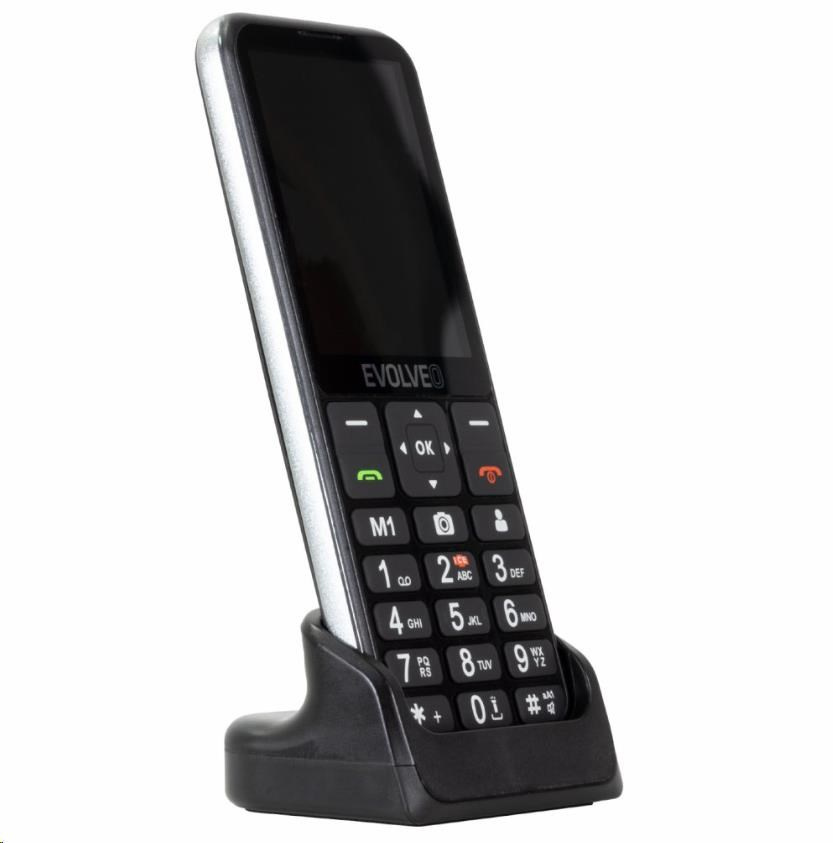 EVOLVEO EasyPhone LT, mobilní telefon pro seniory s nabíjecím stojánkem, černá