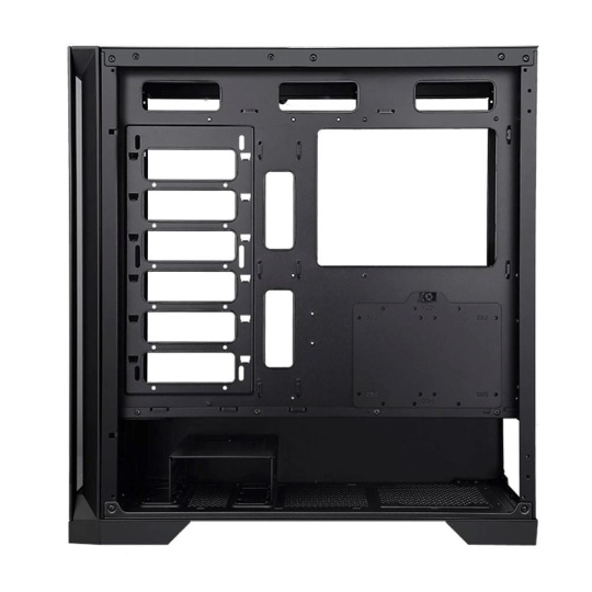 Vnitřní prostor této herní počítačové skříně je navržen tak velkoryse, že může být základem i pro ty nejambicióznější počítačové sestavy. Chladič procesoru může měřit až 164 mm na výšku. Grafická karta se sem vejde v délce až 390 mm. A pro ukládání dat je k dispozici místo pro 2 klasické pevné disky (3,5") a 3 moderní rychlá SSD úložiště (2,5"). Každá hardwarová součástka je zkrátka v této digitální pevnosti vítaným hostem a dostane se jí péče jako na císařském dvoře. Roli přitom nehraje ani její urozený původ – do skříně se dají vložit základní desky Intel i AMD, přičemž jsou podporovány formáty ATX, eATX (Extended ATX), mATX (Micro ATX) i mITX (mini ITX).
