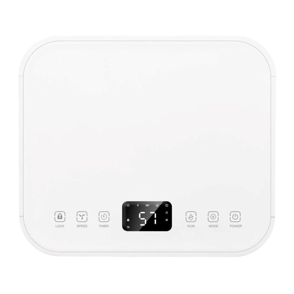 Displej odvlhčovače přehledně zobrazuje aktuální a cílovou vlhkost, rychlost ventilátoru a stav časovače, který lze nastavit až na 24 hodin. V případě výpadku napájení funkce AutoRestart zařízení znovu zapne a obnoví jeho provoz přesně tam, kde skončilo.
