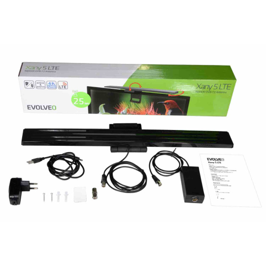 EVOLVEO Xany 5 LTE, 230/5V, aktivní pokojová anténa DAB+/DVB-T2, filtr LTE