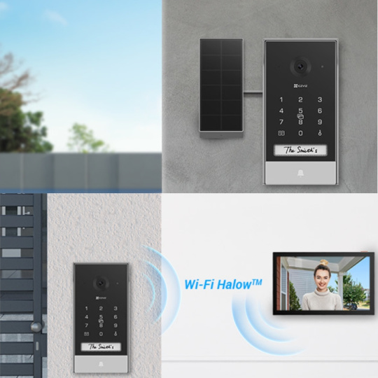 EP7 je připraven na budoucnost a je ekologicky šetrný, což zvyšuje úroveň vašich vstupních dveří s námahou sofistikovanosti. Nabízí rozlišení 2K a 7palcový barevný dotykový displej, dálkové odemykání dveří nebo brány, solární napájení pomocí přiloženého nabíjecího panelu, dvoucestnou komunikaci s podporou funkce změny hlasu, odemykání pomocí hesla, dálkové ovládání prostřednictvím aplikace EZVIZ, odolný vůči povětrnostním vlivům design, vestavěný zvonek s několika vyzváněcími tóny, vysoký výkon Wi-Fi HaLow™, podporu MicroSD karty (až do 512 GB) a úložiště EZVIZ CloudPlay.