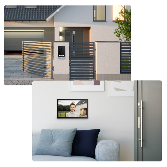 EP7 je 100% bateriový domovní telefon s možností solárního nabíjení a je připraven pro velké domy a vily. Umožňuje vám ovládat jak bránu pro automobily, tak přední dveře, a používá technologii Wi-Fi HaLow™ pro silné spojení s vnitřním monitorem navzdory dlouhému dosahu přenosu a silným zdím, zatímco chytře optimalizuje využití baterie.