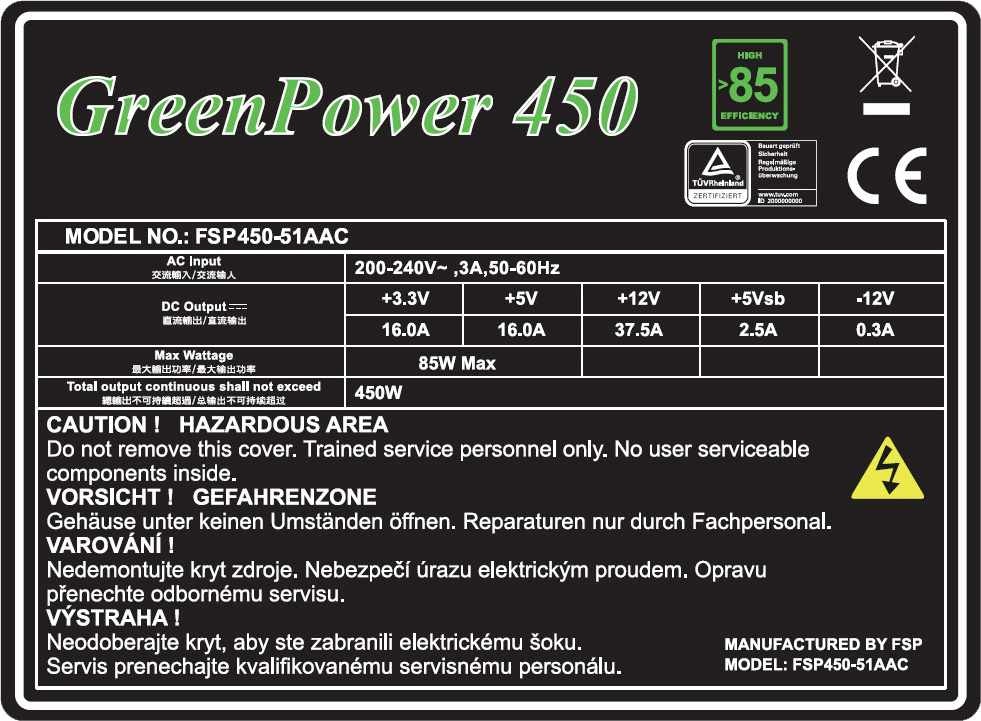 Napájecí zdroje ATX GreenPower 85+, jejichž výrobcem je renomovaná společnost Fortron FSP Group, jsou nejlepší alternativou v poměru vysoké kvality a ceny, jak pro vaše domácí a kancelářské použití, tak i pro herní PC. Svými dlouholetými zkušenostmi v oblasti výroby a znalostí technologií napájecích zdrojů vám poskytnou nejlepší řešení pro váš domov i kancelář. Spolehlivé, efektivní a cenově dostupné zdroje GreenPower 85+ jsou ideální volbou pro vaše PC.
