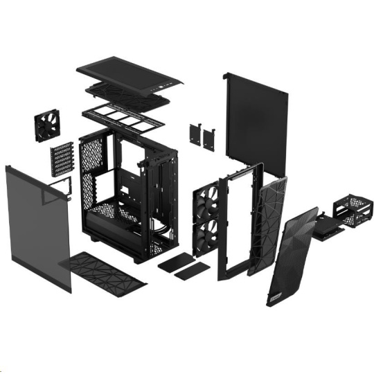Meshify 2 Compact is a high-performing case with a bold, stealth-inspired aesthetic. Its striking exterior features bolt-free, flush tempered glass, a fully removable top panel granting excellent interior access, and a front USB 3.1 Type-C port.