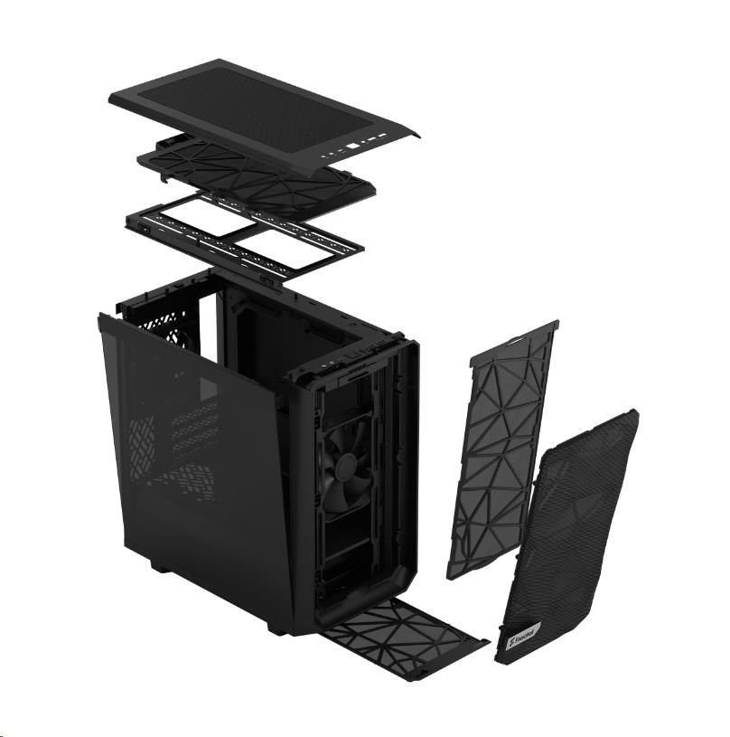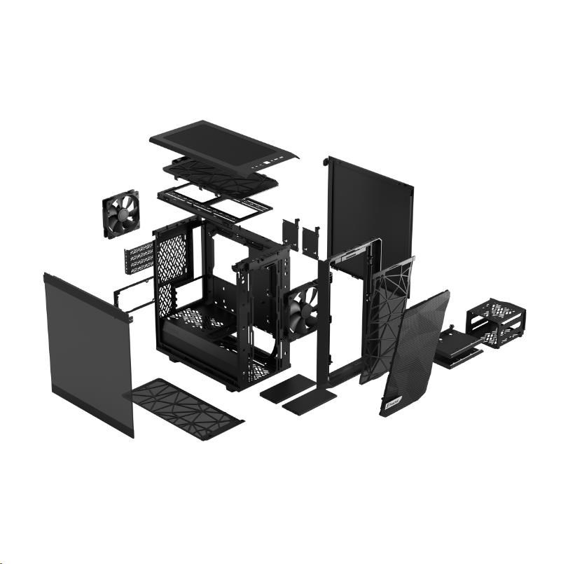 The Meshify 2 Mini offers an excellent combination of airflow and flexibility, in a form-factor optimized for mATX. The bold yet refined exterior design, with its asymmetric angular mesh front, is complemented by a flush TG panel and a fully removable top.