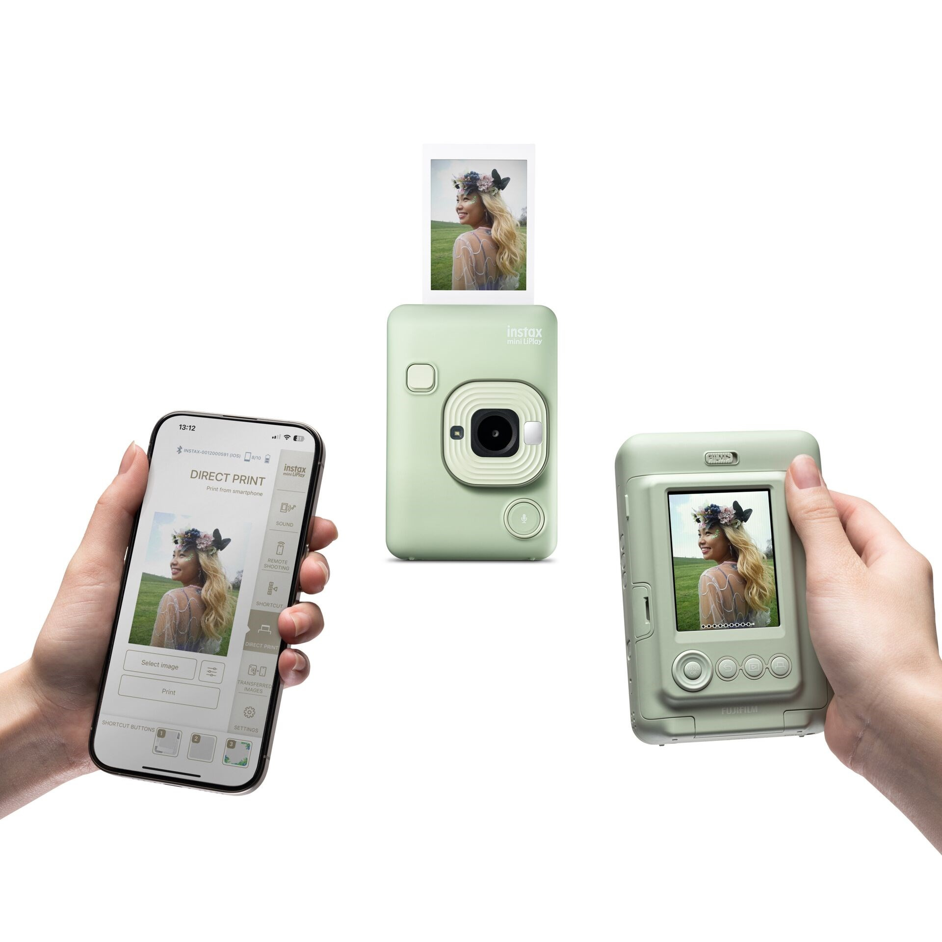 Minimalistický, čistý, decentní - INSTAX mini LiPlay je ztělesněním nenápadné sofistikovanosti. Prodává se v atraktivní barvě Matcha Green, neutrálním odstínu Misty White s puntíky a texturované Deep Bronze. Každá se trefuje do těch správných estetických not.