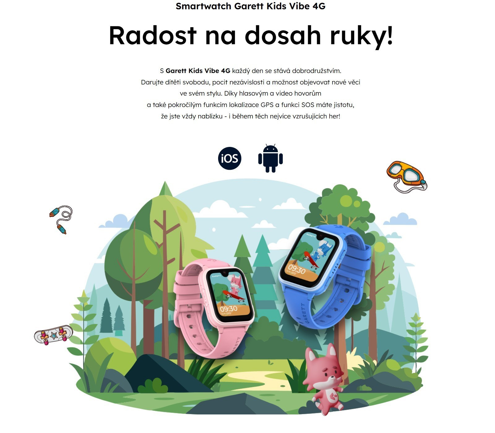 S Garett Kids Vibe AI 4G se každý den stává dobrodružstvím. Darujte dítěti svobodu, pocit nezávislosti a možnost objevovat nové věci vlastním stylem. Díky hlasovým a video hovorům, pokročilým funkcím lokalizace GPS a funkci SOS, máte jistotu, že jste vždy nablízku - i během těch nejzábavnějších her!