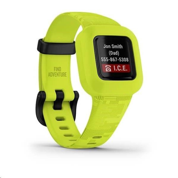 Vaše děti mohou prozkoumávat svůj svět s náramkem vívofit junior 3. Tento dětský odolný tracker s barevným displejem a několika možnostmi zobrazení ciferníku, dokáže fungovat až 1 rok na uživatelsky vyměnitelnou baterii. Má několik různých funkcí, které ocení jak děti, tak rodiče. Dětem ukazuje, jak jsou během celého dne pohybově aktivní, tzn. počítajá, kolik kroků děti za den nachodí a kolik minut stráví intenzivním zdravým pohybem. Při dlouhodobější neaktivitě (např. při delším sezení u počítače nebo televize) je upozorní s výzvou k pohybu. Zároveň jde o užitečný nástroj pro rodiče, kterým mohou zadávat svým dětem různé domácí úkoly a povinnosti a motivovat je k jejich plnění prostřednictvím vybraných odměn. Na úkoly je možné nastavit alarmy (budíčky) a náramek pak zvukovým signálem a zvoleným obrázkem i textem dětem sdělí, že je např. čas na psaní domácích úkolů do školy nebo si jít vyčistit zuby a spát. Za každý splněný úkol děti dostanou určitý počet virtuálních penízků - zlatých mincí, které si po našetření dostatečného množství mohou proměnit ve vybranou odměnu. A pro trochu duševní pohody rodičů se dá rychle podívat na telefonní číslo nouzového kontaktu přímo na displeji hodinek.