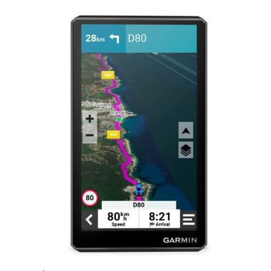 Předinstalované topografické mapy s 3D terénem a silniční mapy Evropy a Blízkého východu. Mapy Afriky (včetně tras Tracks4Africa), Severní a Jižní Ameriky, Austrálie a Nového Zélandu si stáhnete zdarma na garmin.com/express.