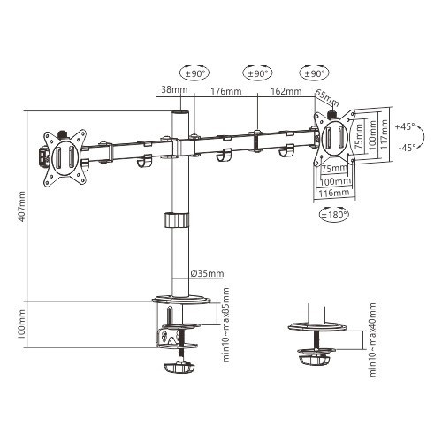 • Stolní držák monitoru s dvojitým ramenem monitoru
