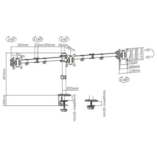 - Stolní držák monitoru s trojitým ramenem monitoru