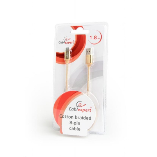 GEMBIRD Kabel USB 2.0 Lightning (IP5 a vyšší) nabíjecí a synchronizační kabel, opletený, 1,8m, zlatý, blister