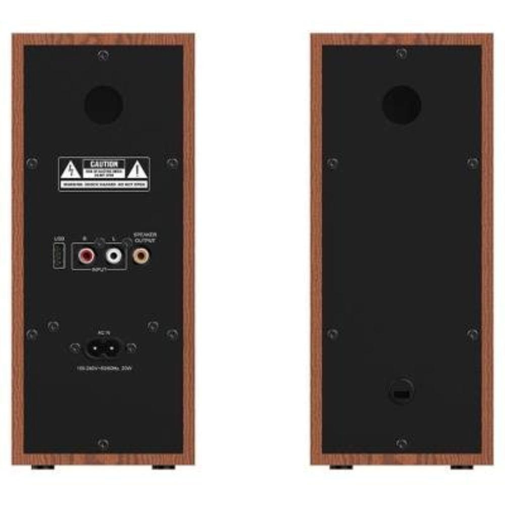 Sada reproduktorů s v konfiguraci 2.0 s celkovým výkonem 20 W. Vyrobeny jsou ze dřeva pro docílení toho nejlepšího zvuku s plnými basy i zřetelnými výškami. Připojení k počítači, notebooku či chytrému telefonu lze jednoduše realizovat drátově skrze audio vstup, nebo bezdrátově pomocí Bluetooth. K dispozici je také sluchátkový výstup a USB vstup. Ovládání hlasitosti a tónů je umístěno přímo na reproduktoru.