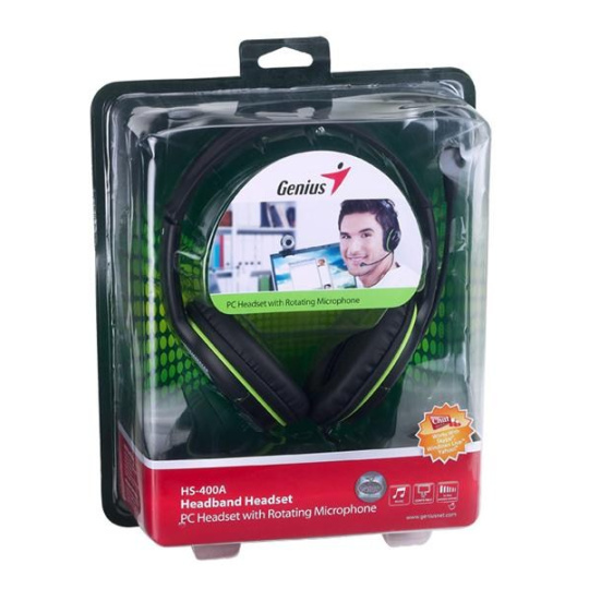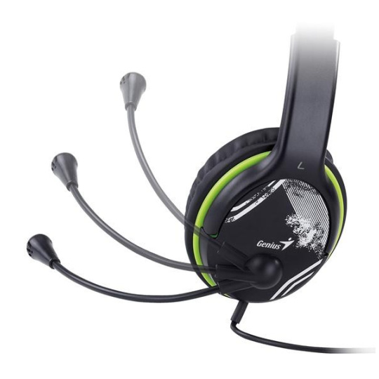 GENIUS sluchátka s mikrofonem HS-400A, černozelená, + redukce na Single Jack