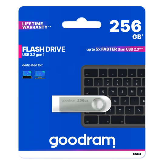 GOODRAM Flash Disk UNO3 256GB, USB 3.2 Gen1, stříbrná