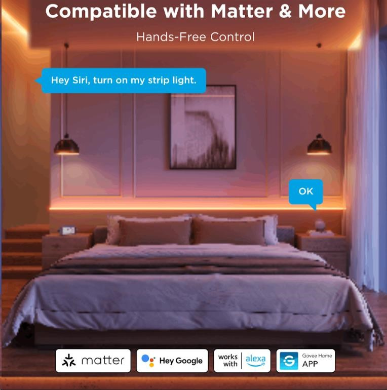 - Ovládání přes aplikaci Govee Home, ovládání hlasem – Siri, Google Assistant, Alexa