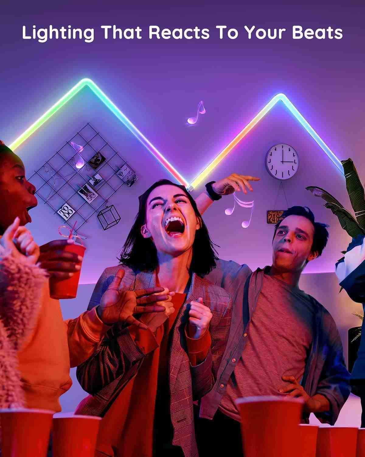 Světelné pruhy se hladce synchronizují s vaší hudbou nebo atmosférickými zvuky při sledování filmů, hraní her a poslouchaní hudby. Na výběr je ze šesti režimů pro nastavení rytmického zvuku – Energy, Rhytm, Bounce, Hopping, Strike a Vibrate.
