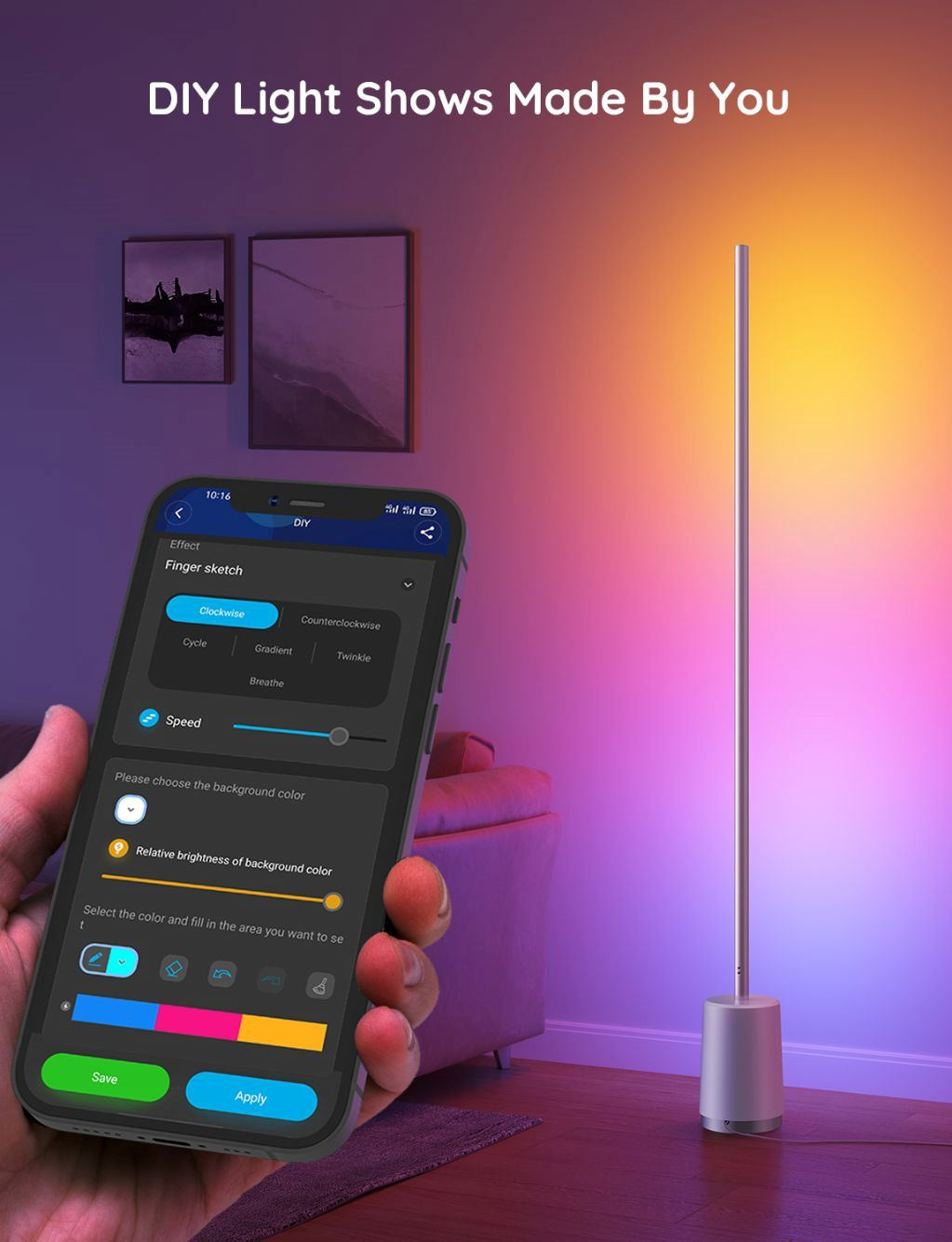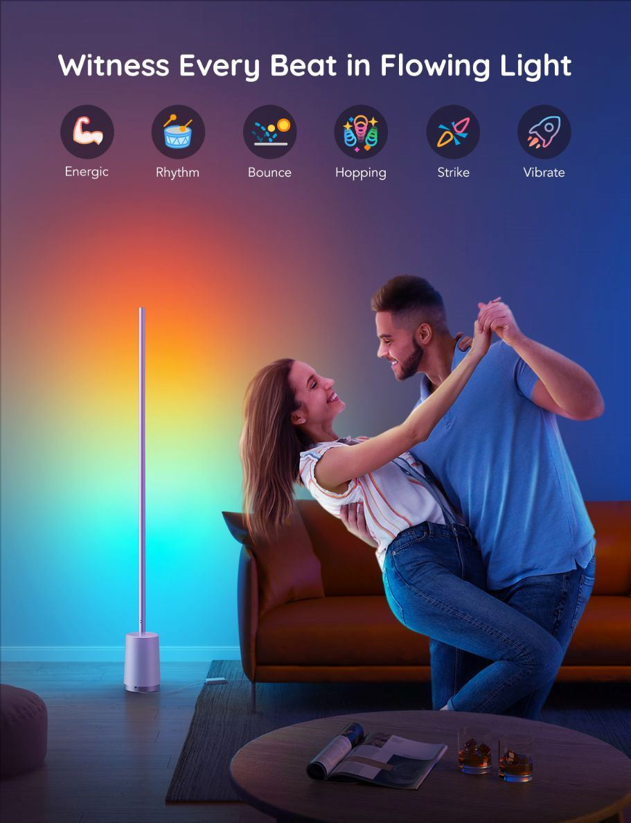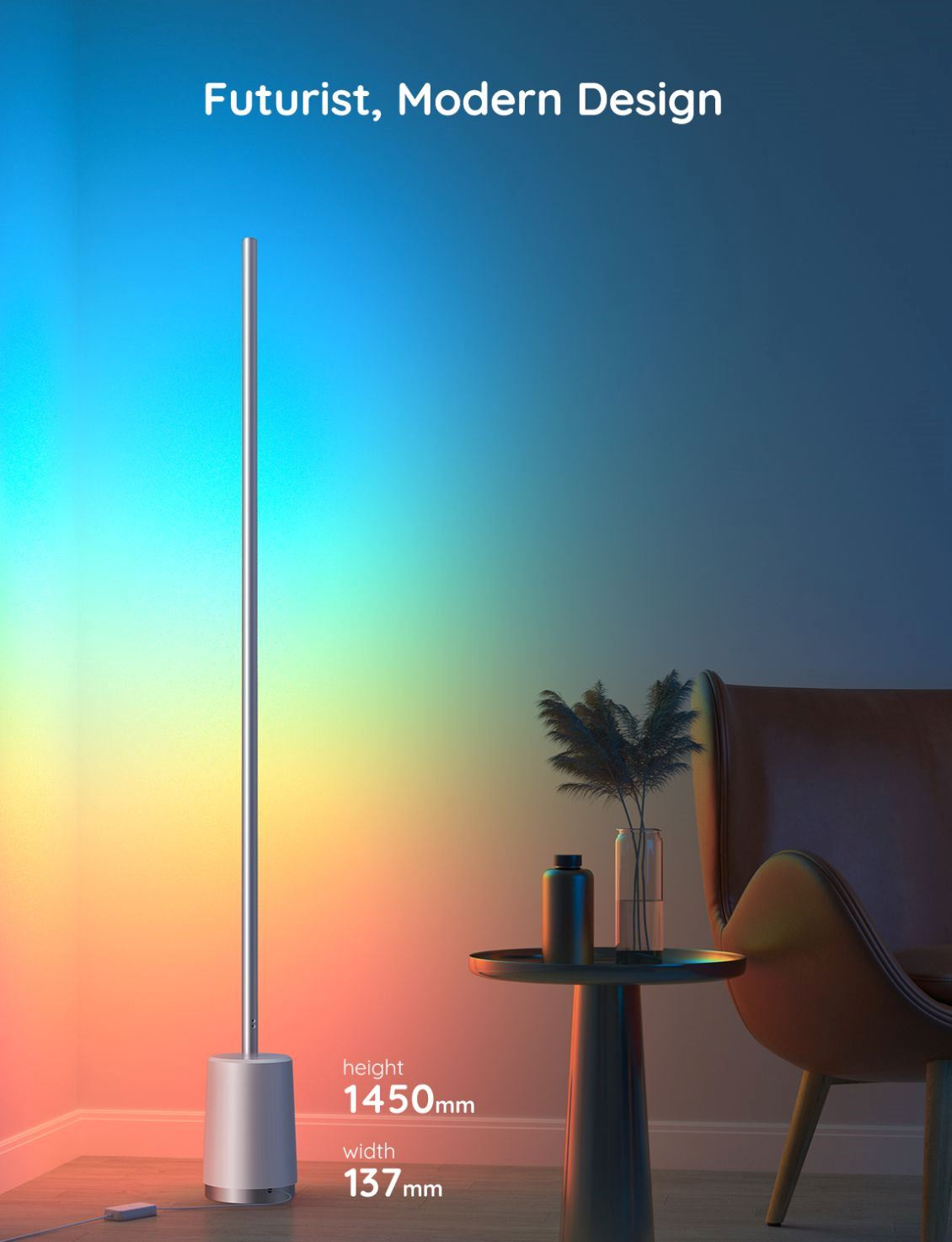 Govee Lyra je minimalistická podlahová lampa, navržená, aby perfektně zapadla do jakéhokoliv interiéru. Jednoduše se hodí všude, protože je ve zhasnutém stavu velmi nenápadná. Vše se změní po aktivaci, kdy se probere jejích 1500 lumenů. Díky diodám s technologií 4 v 1 RGBICWW dosahuje světlo ohromující intenzity. K dispozici je přes 16 milionů barev nebo bílá laditelná od 2200 do 6500 K. Lampa měří téměř 1,5 metru, ale zabírá minimální prostor a lze ji tak umístit doslova kamkoliv. Nejvíce jí to však sluší v rohu, kdy osvítí maximální prostor za sebou a vykouzlí na vaše zdi úžasně plynulé barevné přechody. Životnost lampy je u Govee standardních 50.000 hodin. Ovládání je možné aplikací Govee Home, Google Home, pomocí asistentů Google, Apple i Amazon. Pro maximální pohodlí v balení naleznete i klasický dálkový ovladač, který je kdykoliv v pohotovosti, připnutý přímo k lampě. Samozřejmostí jsou přednastavené scény, kterých je zde 64, několik režimů synchronizace s hudbou a pokud si ani tak nevyberete, čeká na vás DIY režim, který vám dá 100% kontrolu při které je jediný limit vaše fantazie.