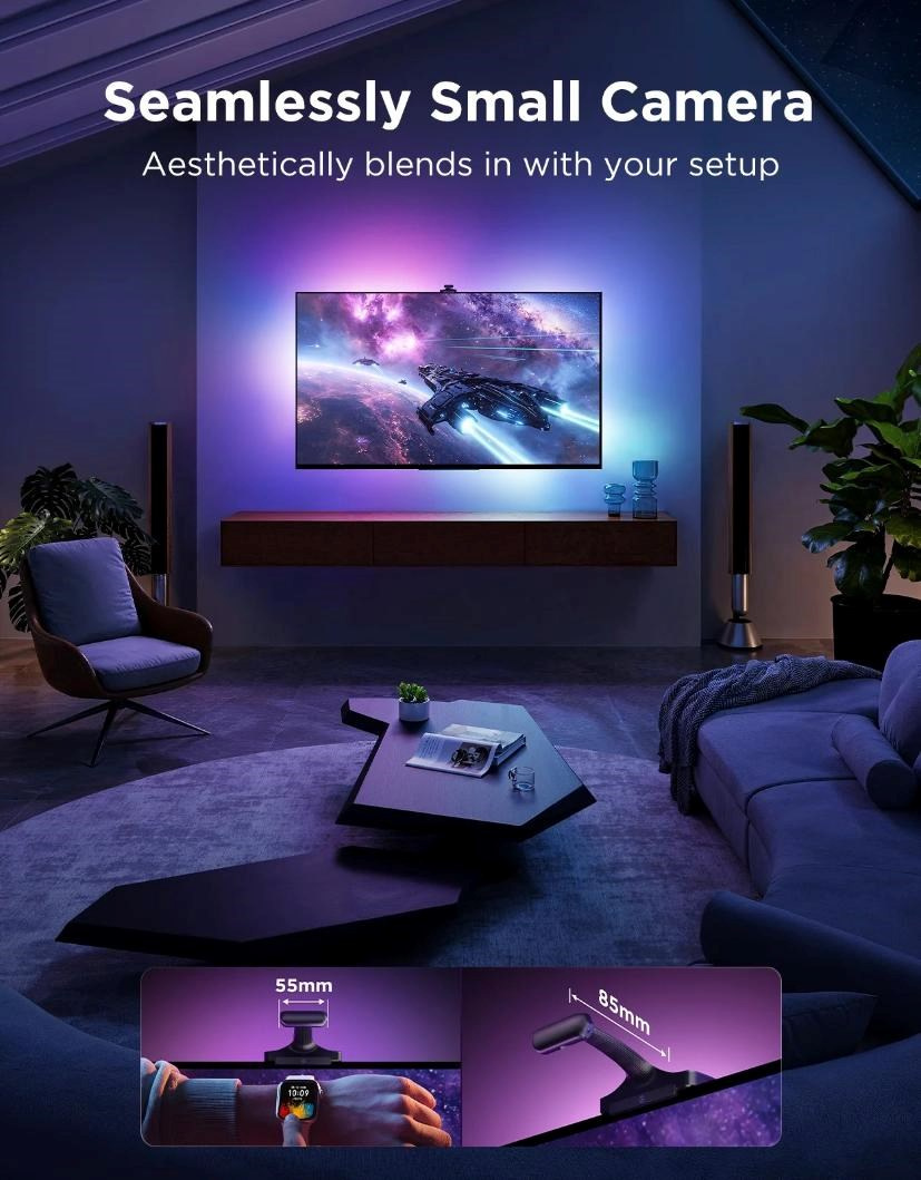Nová kamera je mimořádně malá a nenápadná, takže neruší vzhled televize ani interiéru. Díky kompaktnímu designu ji snadno připevníte na jakýkoli televizor. Při sledování obsahu si jí prakticky nevšimnete, ale její výkon poznáte okamžitě.