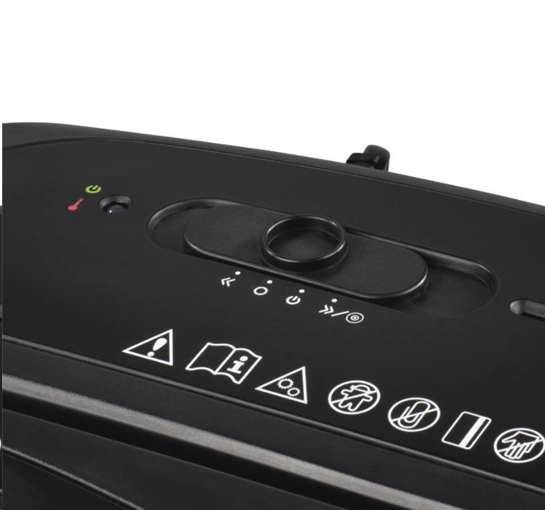 - bezpečnostní mechanismus zabraňuje spuštění skartace, pokud je skartovací hlava nesprávně nasazená na koš pro seskartovaný papír