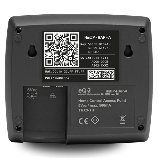 Centrální jednotka (HmIP-HAP-A) je připojena ke standardnímu routeru ethernetovým kabelem (RJ-45) a slouží jako rozhraní mezi cloudem Homematic IP umístěným výhradně na serverech v Německu a zařízeními Homematic IP ve vaší domácnosti.